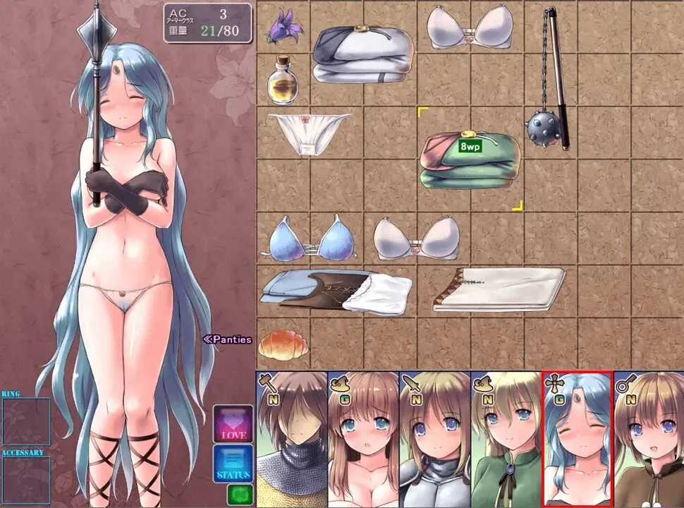 在冒险过程中,你将探索充满敌人的地下城,这些地下城以3D形式呈现。与敌人的战斗采用指令式操作,部分敌人会在战斗中对女主角发动性侵犯。如果你未能成功解救她们,你将目睹女主角被怪物侵犯的全过程。