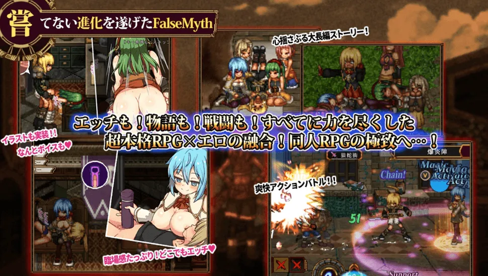 社团“伏地灵亭”主要销售同人游戏。本作的主角是露姬,她在前作中是一位变性为男性的女性。本作是社团前作《FalseMyth~欲望的牺牲~》的续作,剧情有所关联,因此一开始可能会有些摸不着头脑。不过,游戏开头有前作剧情回顾功能,所以即使没玩过前作的玩家也能轻松上手。