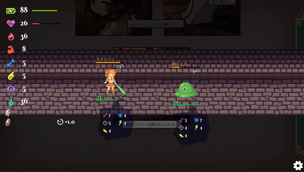 | 催情史莱姆 击败 1-4 | 被催情粘液击败 |