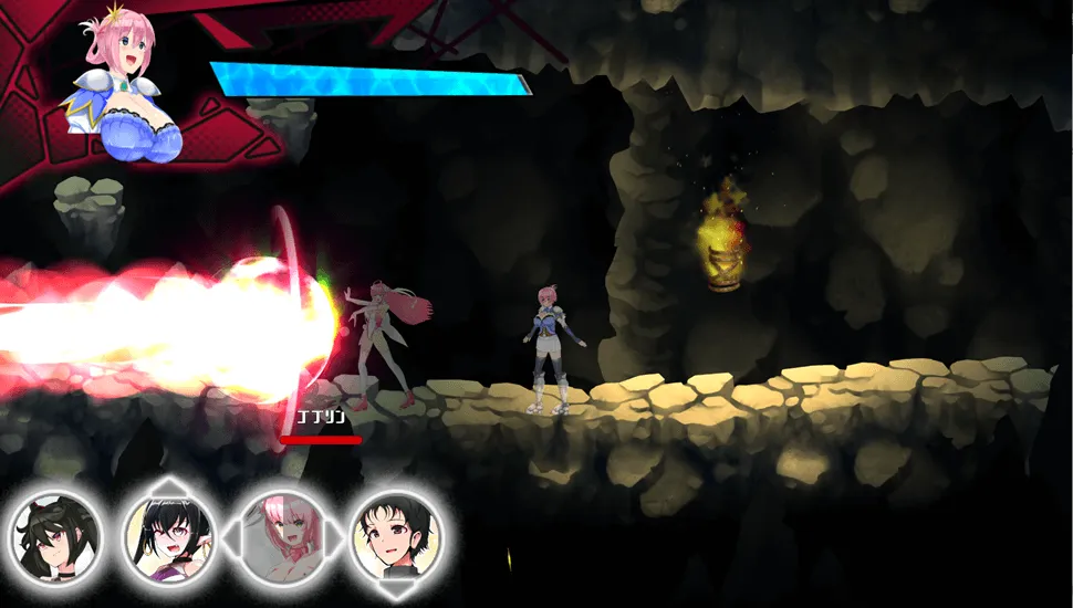 如果阿恩受到一定量的敌人伤害,她就会倒地。如果怪物在这种状态下靠近,画面会切换到H场景。本作中的H场景与普通场景无缝衔接,你可以享受逼真且身临其境的H场景,包括Q版人物动画和全程语音。游戏提供多种性伴侣选择,包括盗贼等人类,以及与哥布林、犬类等异种族的性爱,甚至还有人兽交。此外,你还可以在变身或怀孕期间进行性爱。
